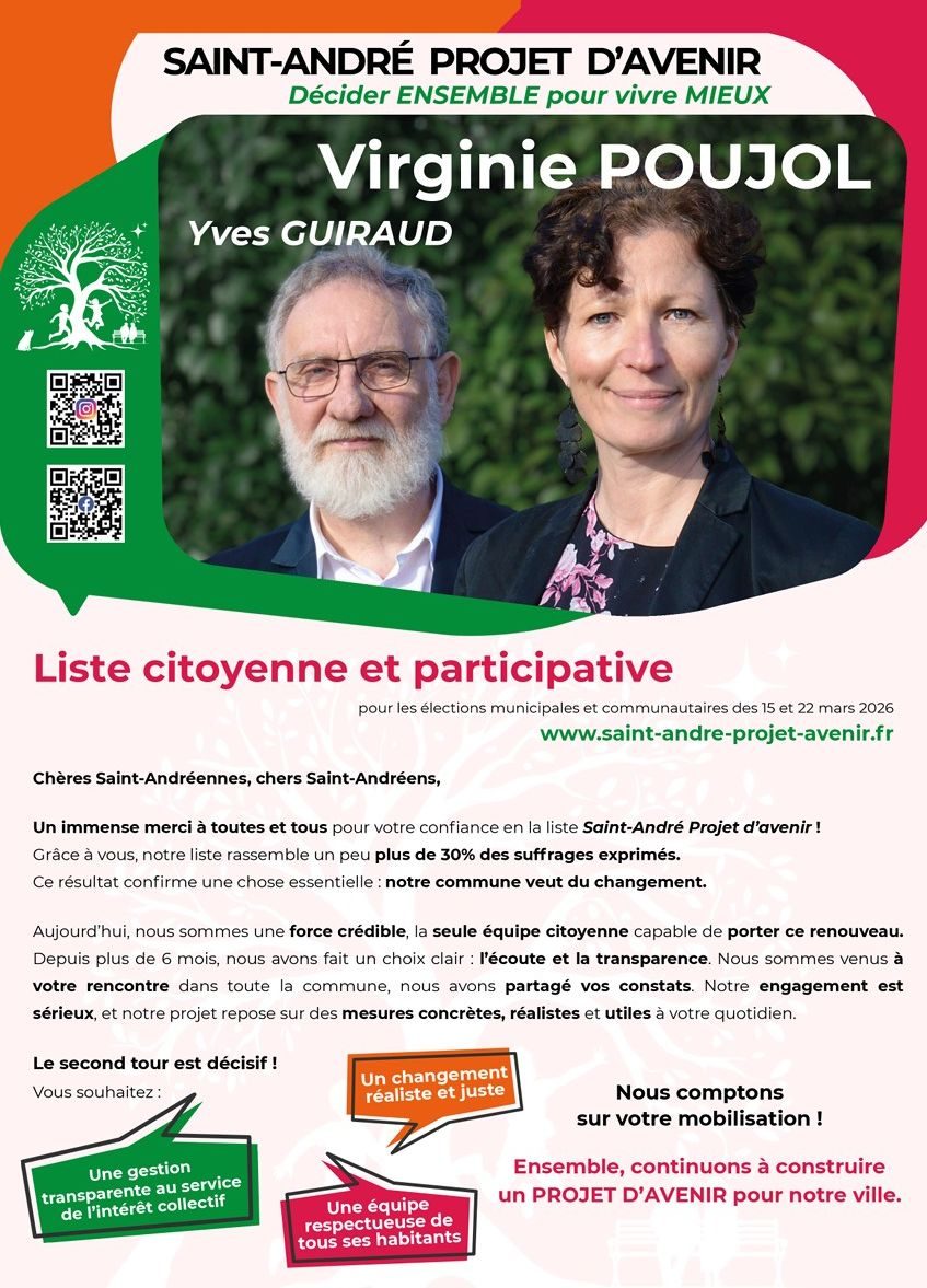 En quelques questions, vous pouvez tester vos connaissances sur Saint-André Projet d’Avenir, découvrir nos propositions et, pourquoi pas, nous faire part de vos réactions ensuite.